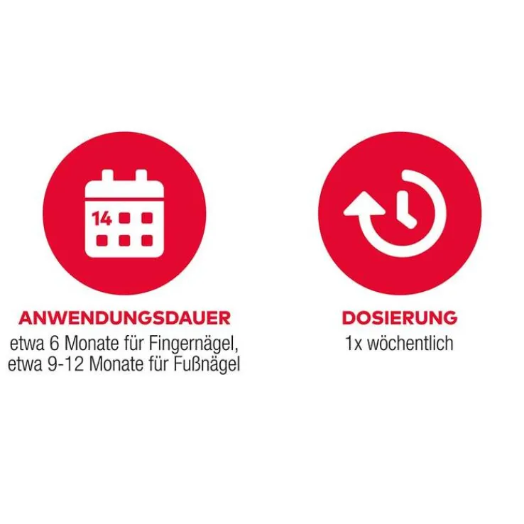 Die 1-mal wöchentliche Anwendung von AMOROLFIN AL 5 % sollte im Allgemeinen über 6 Monate für Fingernägel und 9 bis 12 Monate für Fußnägel ununterbrochen fortgeführt werden. Es ist wichtig, die Anwendung des Nagellacks weiterzuführen, bis die Infektion beseitigt ist und der gesunde Nagel nachgewachsen ist.