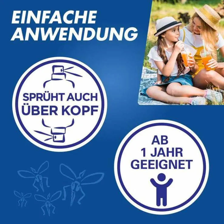 Sie können das Mittel auch zusätzlich auf die Kleidung sprühen.