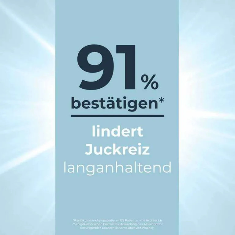 Trockene und gereizte Haut sowie zu Neurodermitis neigende Haut benötigt intensive Pflege und besondere Zuwendung. Die Wirkstoffe des Eucerin AtopiControl Balsam bieten eine gut einziehende und leicht zu verteilende Ganzkörperpflege für die tägliche Anwendung.