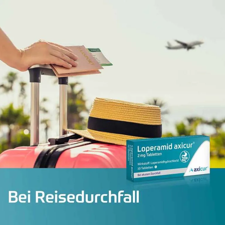 Loperamid axicur® 2 mg Tabletten Wirkstoff: Loperamidhydrochlorid. Anwendungsgebiete: Loperamid ist ein Mittel gegen Durchfall und wird zur symptomatischen Behandlung von akuten Durchfällen bei Erwachsenen und Jugendlichen ab 12 Jahren angewendet, sofern keine ursächliche Therapie zur Verfügung steht. Eine über 2 Tage hinausgehende Behandlung darf nur unter ärztlicher Verordnung u. Verlaufsbeobachtung erfolgen. Enthält Lactose. Zu Risiken und Nebenwirkungen lesen Sie die Packungsbeilage und fragen Sie Ihre Ärztin, Ihren Arzt oder in Ihrer Apotheke. axicorp Pharma GmbH, 61381 Friedrichsdorf. Stand: November 2023