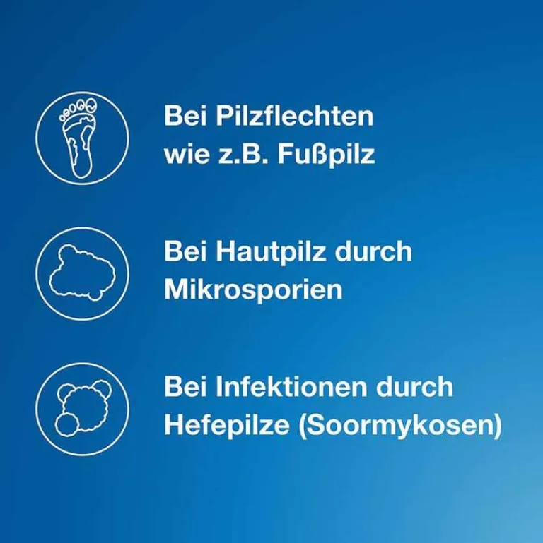 - Bei Pilzinfektionen der Haut wie Pilzflechten (z. B. Fußpilz, Unterschenkelpilz)