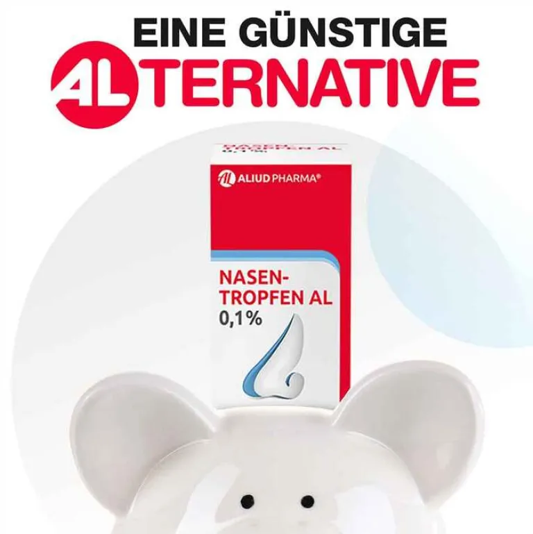 NASENTROPFEN AL 0,1%. Xylometazolinhydrochlorid 1,0 mg/ml Lösung. Zur Anwendung bei Kindern ab 6 Jahren und Erwachsenen. Wirkstoff: Xylometazolinhydrochlorid. Zur Abschwellung der Nasenschleimhaut bei Schnupfen, anfallsweise auftretendem Fließschnupfen (Rhinitis vasomotorica), allergischem Schnupfen (Rhinitis allergica). Zur Erleichterung des Sekretabflusses bei Entzündung der Nasennebenhöhlen sowie bei Katarrh des Tubenmittelohres in Verbindung mit Schnupfen. Enthält Benzalkoniumchlorid. Hinweis: Sollte nicht länger als 7 Tage angewendet werden, es sei denn auf ärztliche Anordnung. Zu Risiken und Nebenwirkungen lesen Sie die Packungsbeilage und fragen Sie Ihre Ärztin, Ihren Arzt oder in Ihrer Apotheke. ALIUD PHARMA® GmbH, Postfach 1380, 89146 Laichingen. Stand: März 2021