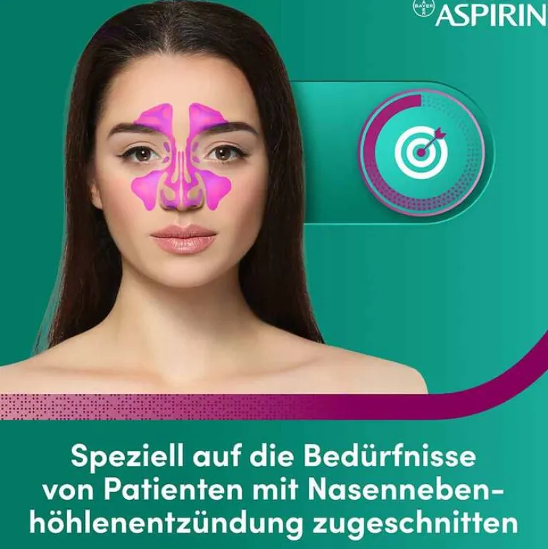 Gleichzeitig können Betroffene dank Aspirin® SinuComplex auf abschwellende Nasensprays verzichten, die bei Nasennebenhöhlenentzündungen häufig eingesetzt werden, dabei jedoch nicht bis in die tieferliegenden Nebenhöhlen gelangen. Aspirin® SinuComplex entfaltet seine abschwellende Wirkung in allen betroffenen Bereichen der Nase und Nebenhöhlen und wirkt damit umfassender als Nasensprays. Die schmerzlindernde Wirkung sowie entzündungshemmende Eigenschaft des Präparates ersparen außerdem die Einnahme weiterer Schmerztabletten. Als Präparat zur Kurzzeitbehandlung der Symptome einer Nasennebenhöhlenentzündung ist Aspirin® SinuComplex darüber hinaus speziell auf die Bedürfnisse von Nasennebenhöhlen-Patienten zugeschnitten. Während sich diese bisher oft mit verschiedenen universellen Erkältungspräparaten zur Linderung einzelner Symptome zufriedengeben mussten, bietet Aspirin® SinuComplex nun eine gezielte Lösung für Betroffene in nur einem Präparat.