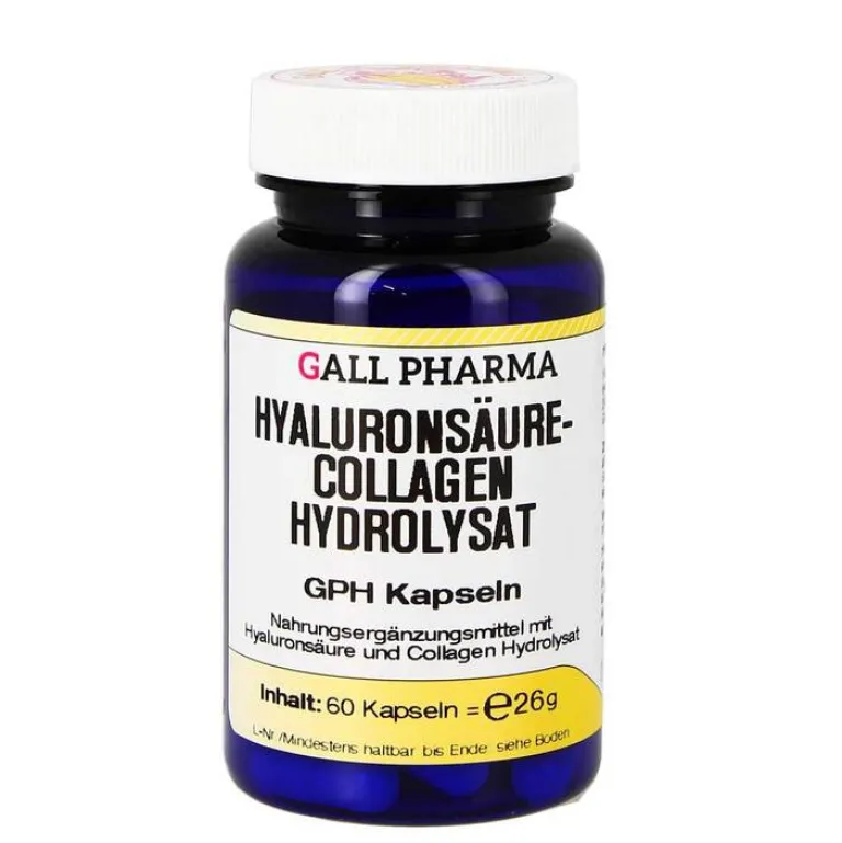 Collagen Hydrolysat-Hyaluronsäure GPH Kapseln sind ein Qualitätsprodukt mit hochwertigem, fermentativ gewonnenem Natriumsalz der Hyaluronsäure und aus Hühnerknorpeln gewonnenem Collagen Hydrolysat. Die in den Hartgelatinekapseln verwendete Gelatine ist BSE/TSE-geprüfte Pharmagelatine.