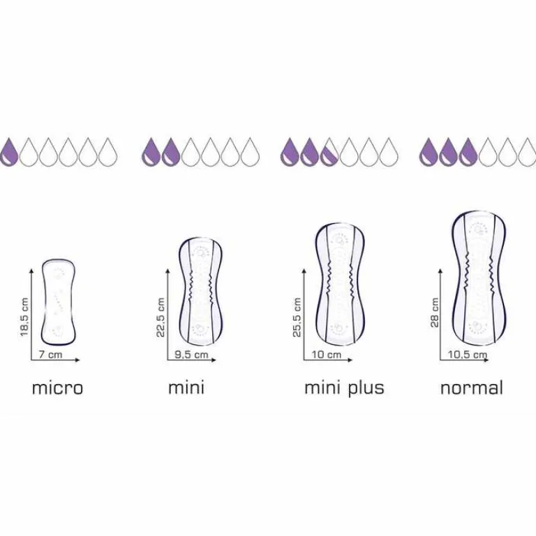 Inhalt: Zellstoff, Superabsorber, atmungsaktive Außenschicht, hydrophiles Vlies, hydrophobes Vlies (außer: Micro), Verteilungsvlies (außer Micro), elastisches Bändchen (außer Micro, Mini, Mini Plus, Normal), elastisches Garn (außer Micro), thermoplastische Kleber, silikonbeschichtetes Papier, Farbe (außer Mini Plus).