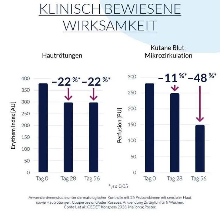 ² Studie mit 20 Proband:innen mit Erythrose, Couperose oder Rosazea Subtyp I.