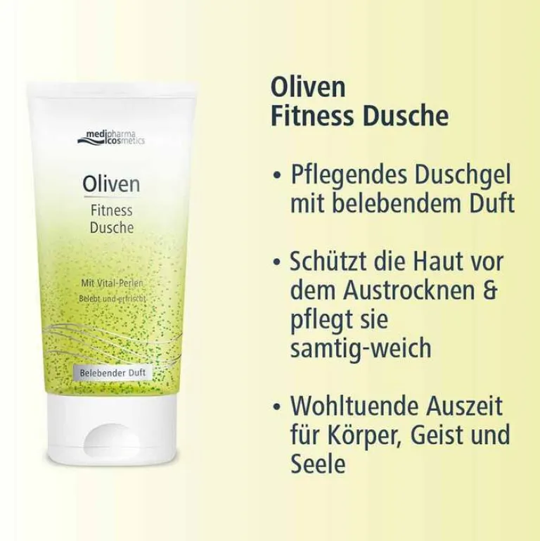 Die medipharma cosmetics Oliven Fitness-Dusche: Ein erfrischender Moment der Pflege und Entspannung. Der Schlüssel zu einem mediterranen Wellness-Erlebnis direkt in Ihrem Badezimmer.
