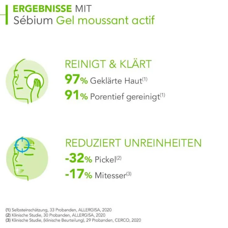 Sebium Gel moussant actif reinigt porentief, reduziert Unreinheiten und macht die Haut geschmeidig. Das schäumende Gel beseitigt überschüssigen Talg und reinigt die Epidermis. Seine ultra-sanfte Formel ist die perfekte Balance aus Wirksamkeit und Verträglichkeit. Das Gel ist nicht austrocknend, seifenfrei und nicht komedogen. Es enthält einen frischen Duft.
