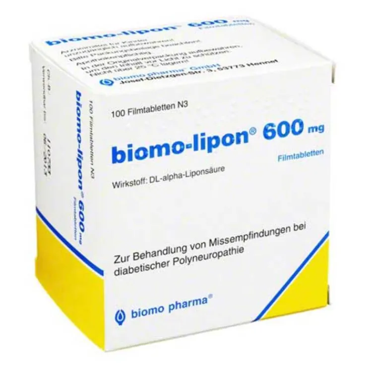 biomo-lipon 600 mg wird angewendet bei Missempfindungen bei diabetischer Nervenschädigung (Polyneuropathie).