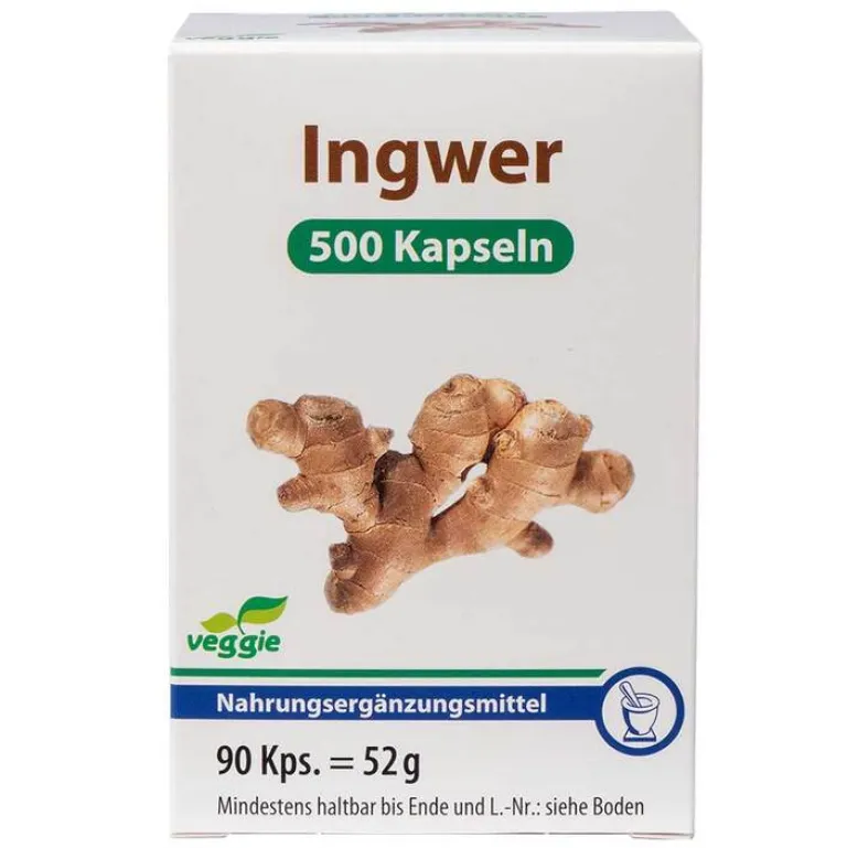 Ingwerextrakt, Hydroxypropylmethylcellulose (Kapselhülle), Farbstoff Calciumcarbonat.