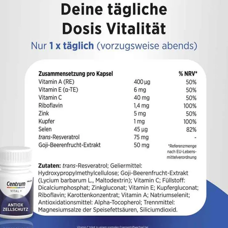 Schreibe die erste Bewertung für „Centrum Vital + Antiox Zellschutz Kapseln, 30 St“ Antworten abbrechen