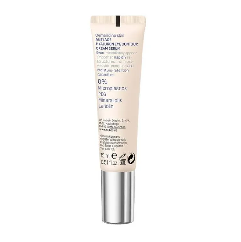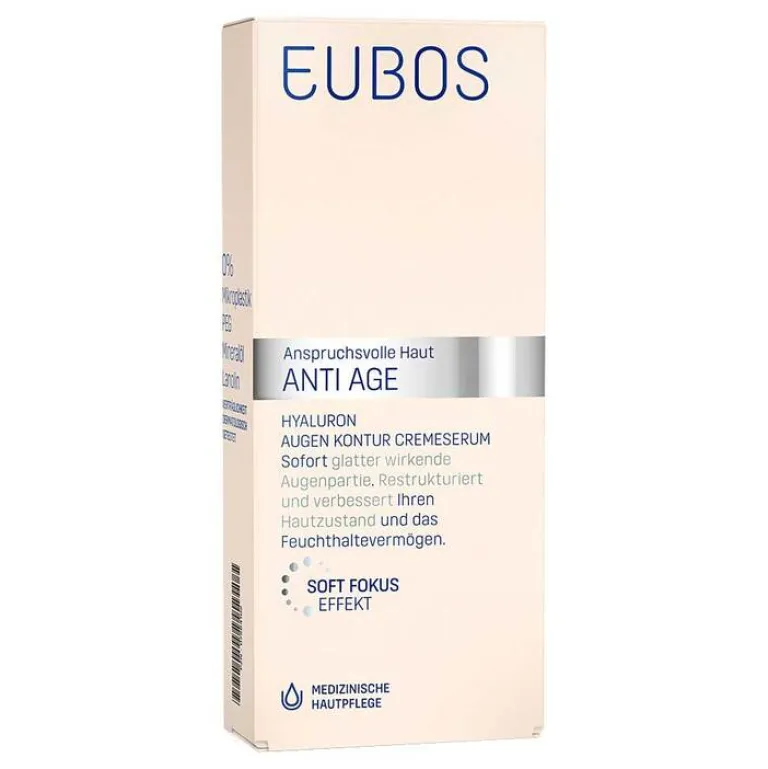 Das Eubos Anti Age Hyaluron Augen Kontur Cremeserum ist eine besondere Pflege für eine sichtbar glattere Augenkontur. Das Serum verbessert deutlich das Feuchthaltevermögen und den allgemeinen Zustand der Haut.