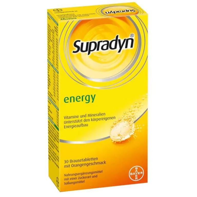 Supradyn enthält 27 wichtige Nährstoffe, die der Körper zur täglichen Versorgung braucht: 13 Vitamine sowie 5 Mineralstoffe und 9 Spurenelemente. In einer Tablette Supradyn steckt der gesamte Tagesbedarf an allen Vitaminen plus einer Extra-Portion B-Vitamine – für den Energiestoffwechsel. Die Mineralstoffe und Spurenelemente in Supradyn tragen zu einer ausgewogenen Versorgung bei.