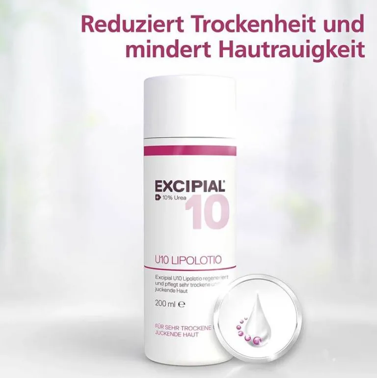 Excipial U 10 Lipolotio ist eine Körperlotion für (sehr) trockene, juckende und schuppende Haut mit 10 % Urea (Harnstoff). Ihre Haut wird stark gefettet und intensiv mit Feuchtigkeit versorgt.