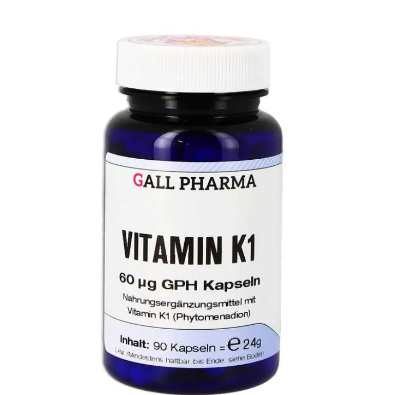 Vitamin K1 60 µg GPH Kapseln enthalten 60 µg Vitamin K1 in einer Hartgelatinekapsel.Vitamin K trägt• zu einer normalen Blutgerinnung bei• zur Erhaltung normaler Knochen bei