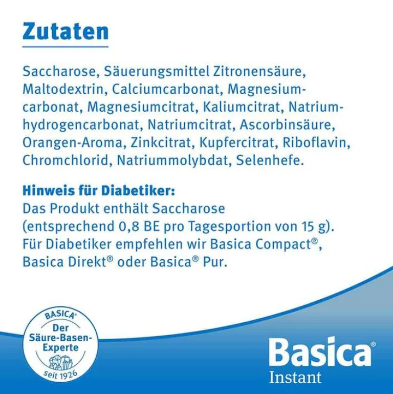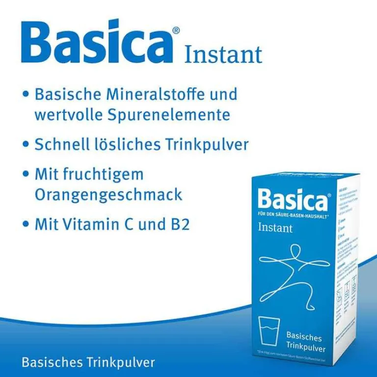 Basica Instant® löst sich in Wasser schnell auf und schmeckt angenehm fruchtig nach Orange. Basica Instant® wird nur einmal täglich eingenommen – ideal auch für zwischendurch.