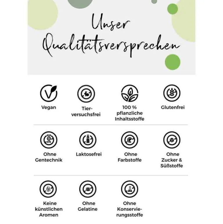 Die angegebene empfohlene tägliche Verzehrmenge darf nicht überschritten werden. Nahrungsergänzungsmittel dienen nciht als Ersatz für eine ausgewogene und abwechslungsreiche Ernährung sowie eine gesunde Lebensweise.