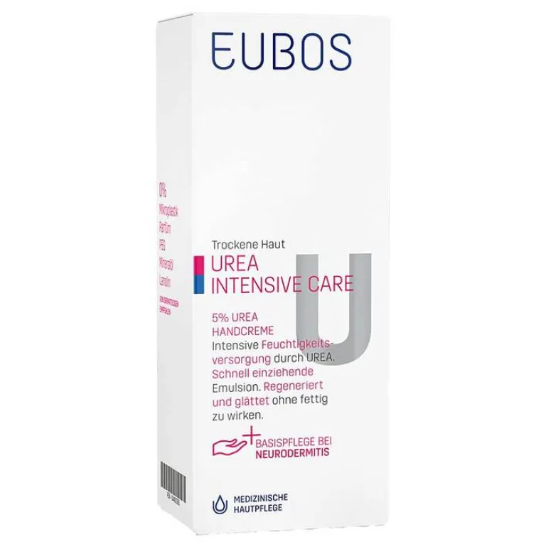 Die Eubos trockene Haut Urea Intensiv Care 5% Handcreme ist ein medizinisches Pflegeprodukt für trockene Haut. Die enthaltenen 5% Urea plus Glycerin erhöhen die Hydration. D-Panthenol, Vitamin E und Allantoin verbessern das Feuchthaltevermögen. Vitamin B3 stärkt die hauteigene Barriere und fördert die Hauterneuerung. Shea-Butter und ausgesuchte Esteröle spenden Lipide und pflegen gereizte Haut.