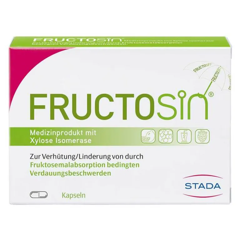 FRUCTOSiN® ist ein Medizinprodukt, das den Körper bei bestehender Fruktosemalabsorption unterstützt. FRUCTOSiN® enthält das Enzym Xylose Isomerase, das im Dünndarm Fruktose in leicht verwertbare Glukose umwandelt. Auf diese Weise wird die Fruktose im Darm eliminiert und die Symptome der Fruktosemalabsorption vermieden.