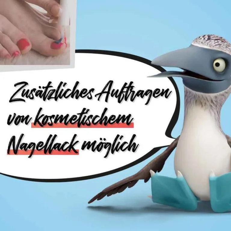 Der Nagellack ist einmal wöchentlich auf die befallenen Finger- oder Fußnägel aufzutragen.