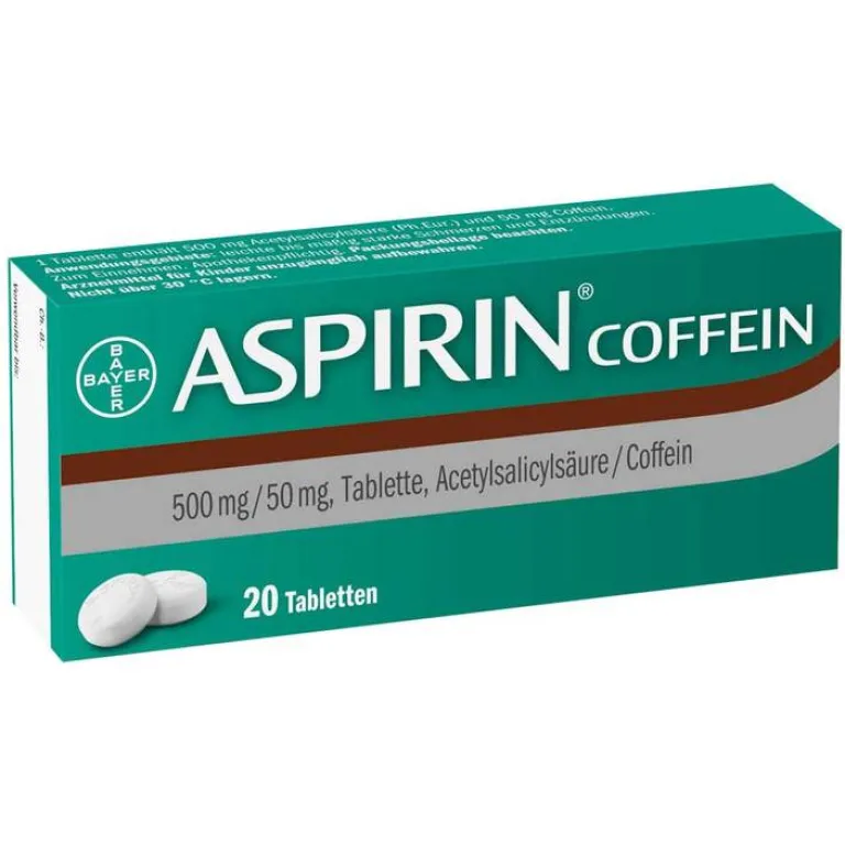 Aspirin® Coffein Wirkstoff: Acetylsalicylsäure und Coffein. Anwendungsgebiete: Leichte bis mäßig starke Schmerzen, z.B. Kopf-, Zahn-, Regelschmerzen, Entzündungen. Bitte beachten Sie die Angaben für Kinder. Zu Risiken und Nebenwirkungen lesen Sie die Packungsbeilage und fragen Sie Ihre Ärztin, Ihren Arzt oder in Ihrer Apotheke. Bayer Vital GmbH, 51368 Leverkusen, Deutschland. Stand 12/2019