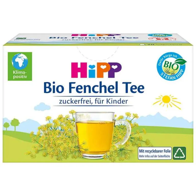Aufgussbeutel mit ca. 200 ml kochendem Wasser übergießen und ca. 5 Minuten ziehen lassen. Auf Trinktemperatur (ca. 37°C) abkühlen. Temperatur überprüfen. Tee stets frisch zubereiten. Bitte nicht nachsüßen! Je nach Alter ihres Kindes 1-2 Portionen über den Tag verteilt. Hipp Bio-Fenchel-tee schmeckt warm und kalt.