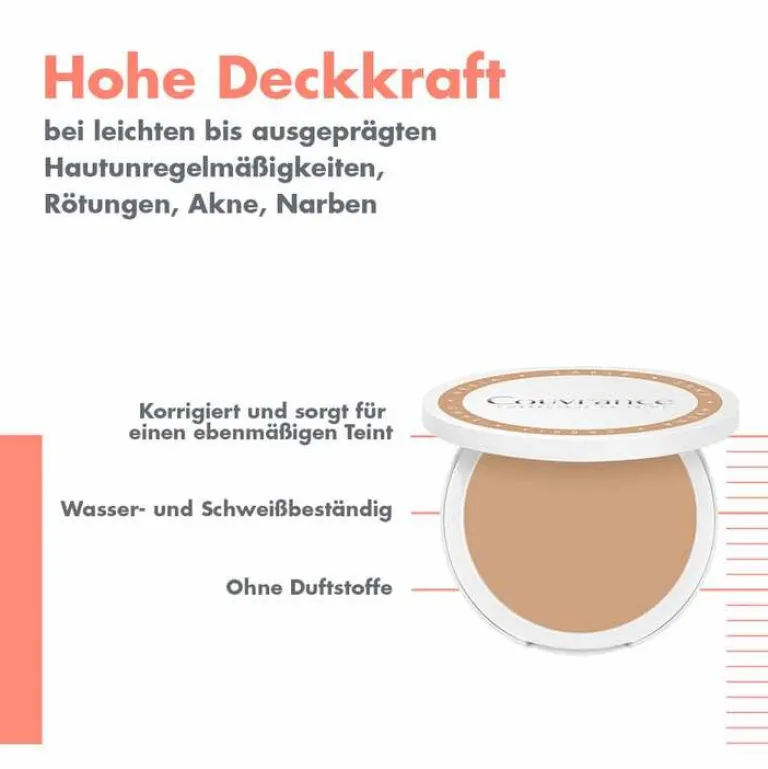 - 1. Das Kompakt Make-Up korrigiert und deckt auch ausgeprägte Hautunregelmäßigkeiten und Rötungen ab. Makelloser, strahlender Teint. Spf30. Wasserfeste Formel.
