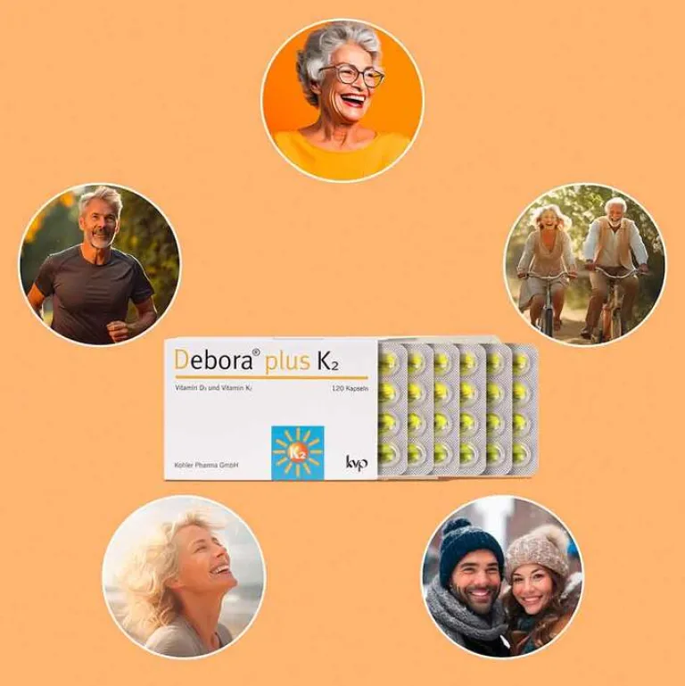 Die regelmäßige Einnahme von Debora plus K2 Kapseln hilft dabei, die benötigten Mengen von Vitamin D und K2 bereitzustellen und dadurch zweifach für gesunde Knochen sorgen.*