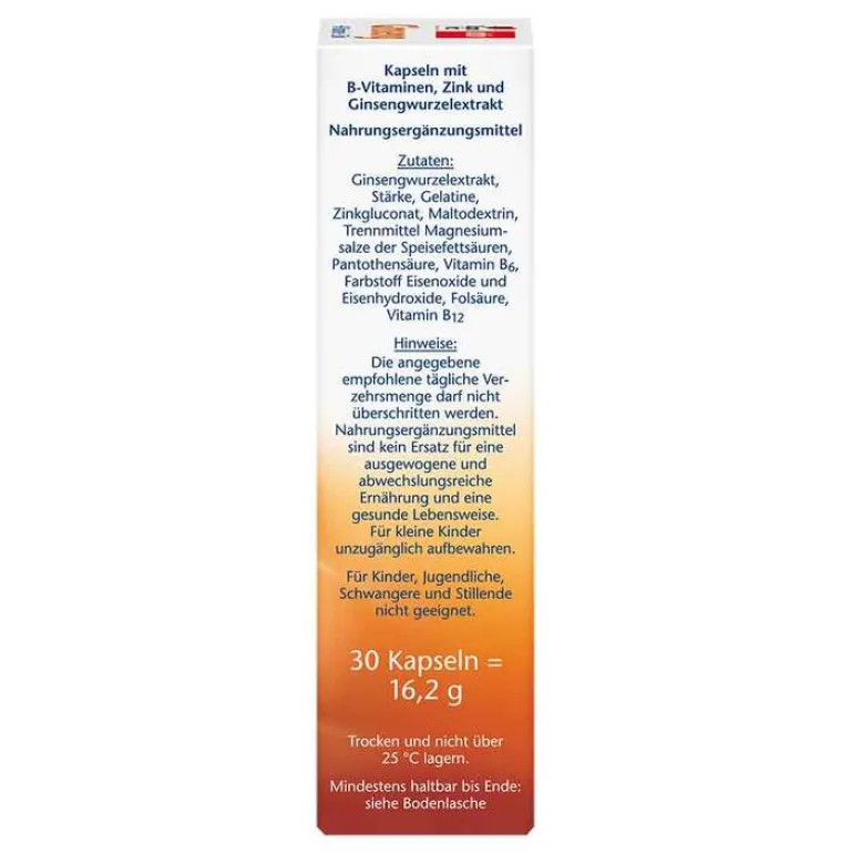 - Nahrungsergänzungsmittel mit Ginseng, B-Vitaminen und Zink
