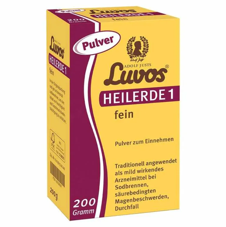 Adolf Justs Luvos® Heilerde 1 fein Pulver zur Einnahme Anwendungsgebiete: Traditionell angewendet als mild wirkendes Arzneimittel bei Sodbrennen, säurebedingten Magenbeschwerden, Durchfall. Zu Risiken und Nebenwirkungen lesen Sie die Packungsbeilage und fragen Sie Ihre Ärztin, Ihren Arzt oder in Ihrer Apotheke. Heilerde-Gesellschaft Luvos Just GmbH & Co. KG