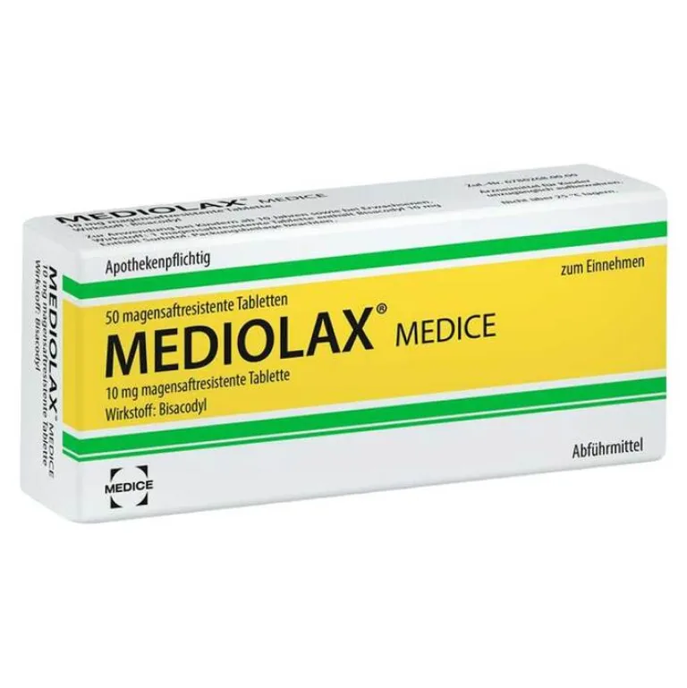 Mediolax® Medice, 10 mg magensaftresistente Tabletten. Wirkstoff: Bisacodyl. Anwendungsgebiete: Zur kurzfristigen Anwendung bei Obstipation; bei Erkrankungen, die eine erleichterte Defäkation erfordern. Zur Anwendung bei Kindern ab 10 Jahren sowie bei Erwachsenen. Zu Risiken und Nebenwirkungen lesen Sie die Packungsbeilage und fragen Sie Ihre Ärztin, Ihren Arzt oder in Ihrer Apotheke. Stand: 07/2016 . MEDICE Arzneimittel, 58638 Iserlohn.