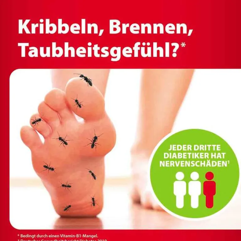 - Behebt den Vitamin-B1-Mangel und kann dadurch Symptome wie Kribbeln, Brennen und ein Taubheitsgefühl in den Füßen lindern
