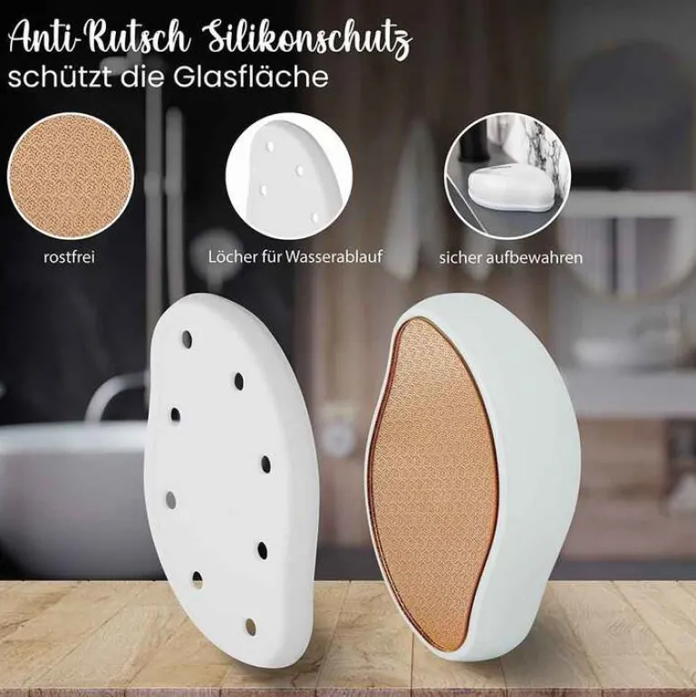 Der Hornhauthobel verfügt über einen praktischen Anti-Rutsch Schutzdeckel mit Löchern für den Wasserabfluss. Er lässt sich somit sicher aufbewahren.