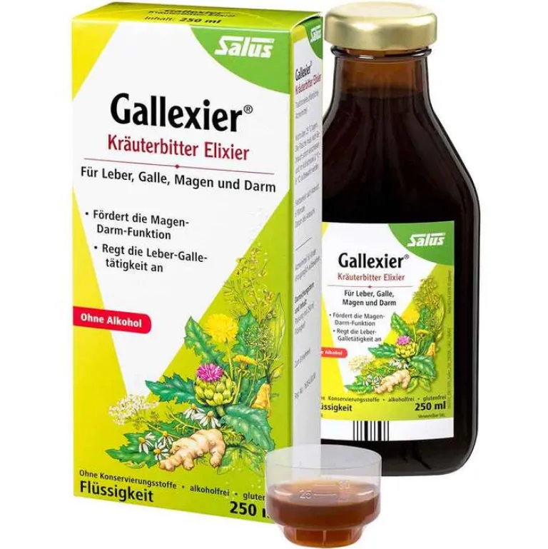 GALLEXIER Kräuterbitter ElixierAnwendungsgebiet: Traditionelles pflanzliches Arzneimittel angewendet zur Unterstützung der Magen-Darm-Funktion und des Leber-Galle-Systems, ausschließlich auf Grund langjähriger Anwendung. Enthält Fructose. Bitte Packungsbeilage beachten. Zu Risiken und Nebenwirkungen lesen Sie die Packungsbeilage und fragen Sie Ihre Ärztin, Ihren Arzt oder in Ihrer Apotheke.
