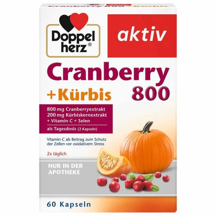 Die Pflanzenzubereitungen aus Cranberry und Kürbiskernen bilden die pflanzliche Basis der Kapseln von Doppelherz.