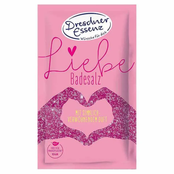 Dresdner Essenz Badesalz Liebe ist ein Badesalz voller Liebe mit dem sinnlich-verwöhnendem Duft von Wildrosen und natürlichem ätherischen Ylang Ylang Öl. Es öffnet Ihr Herz und verwöhnt Ihre Sinne.