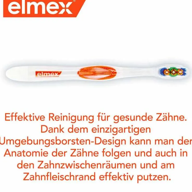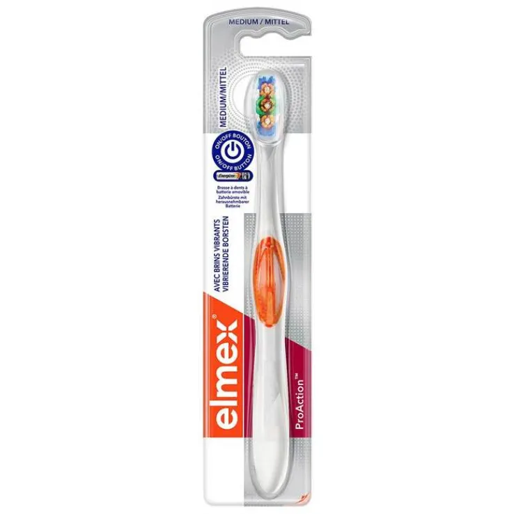 Die Elmex Pro Action ist eine hochmoderne Handzahnbürste, die mit ihren vibrierenden Rundumborsten und Polierkelchen mit einer Leistung von bis zu 20.000 Schwingungen pro Minute die Zähne und Zahnzwischenräume effektiv und gründlich reinigt. Sie gelangt tief in die schwer zugänglichen Stellen zwischen den Zähnen und entlang des Zahnfleischsaums.