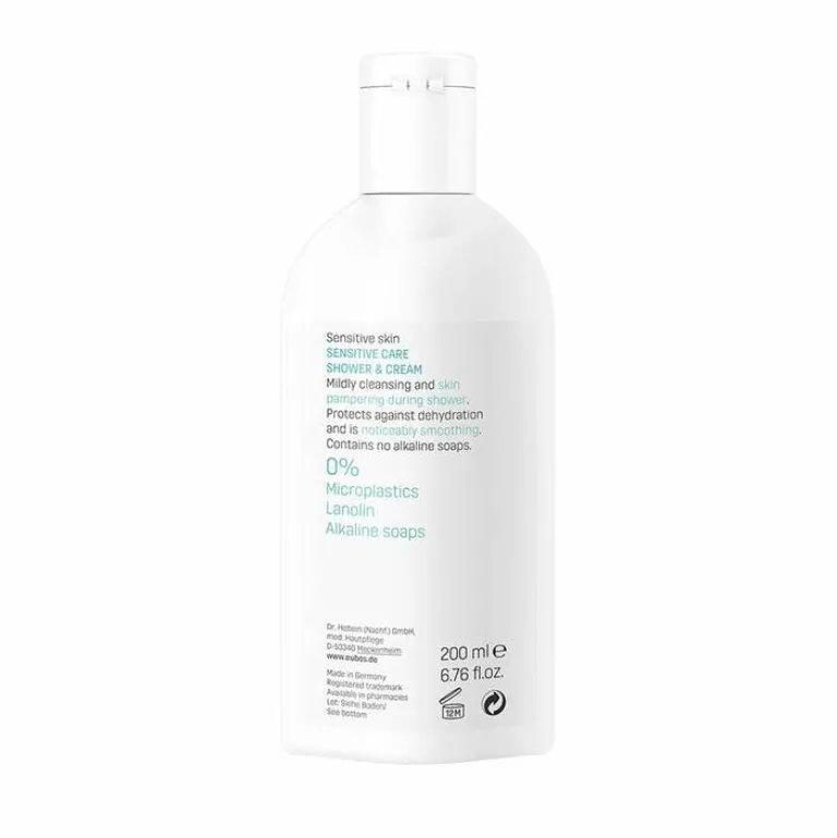 Die Eubos sensitive Pflege Dusch & Creme ist eine Reinigung und Pflege für empfindliche Haut schon während des Duschens. Die Haut wird beruhigt mit mineralreichem Thermalwasser aus den Pyrenäen. Sie wird pH-hautneutral und alkaliseifenfrei mit milden Tensiden und schonenden, rückfettenden Substanzen gereinigt. Panthenol, pflanzliche Lipide und Pflegekomponenten pflegen und glätten die Haut spürbar und bewahren sie vor Austrocknung. Eubos sensitive Dusch & Creme wurde dermatologisch getestet und ist sehr gut verträglich.