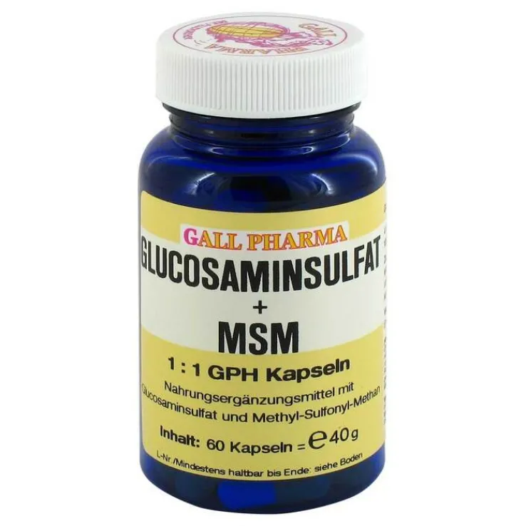 Glucosaminsulfat + MSM 1:1 GPH Kapseln enthalten 250 mg D-Glucosaminsulfat als Kaliumsalz und 250 mg MSM in einer Hartgelatinekapsel.