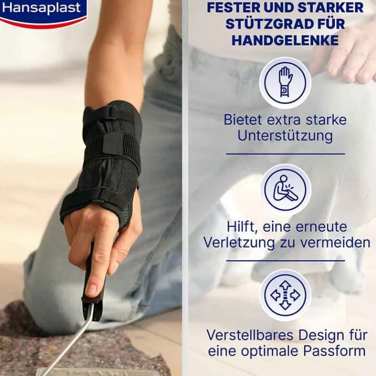 Stabilisiert Handgelenke zuverlässig Bietet Schutz vor weiteren Verletzungen Individuell einstellbar