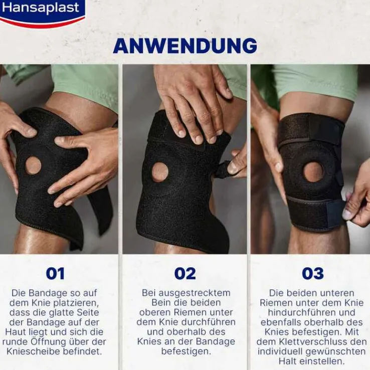 Die Hansaplast Protective Knie-Bandage wurde von Physiotherapeutinnen und -therapeuten sowie Sportärztinnen und -ärzten intensiv getestet. Mit der Hilfe dieser Fachexpertise optimiert Beiersdorf stetig die Produkte und damit den Nutzen für Sie.
