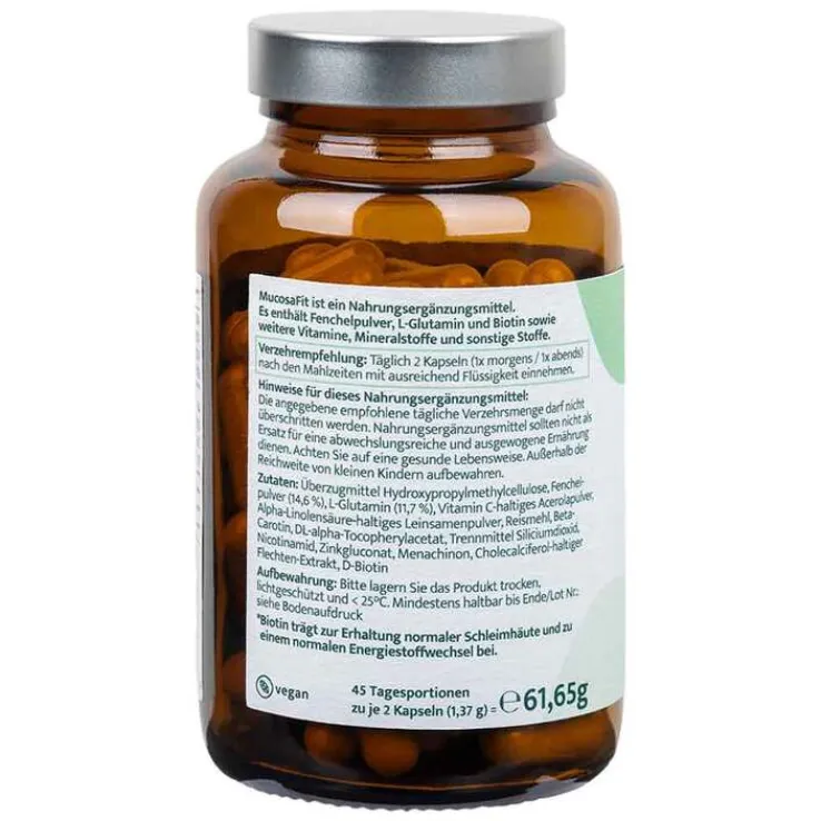 MucosaFit ist ein veganes Nahrungsergänzungsmittel geeignet für eine histaminarme Ernährung.