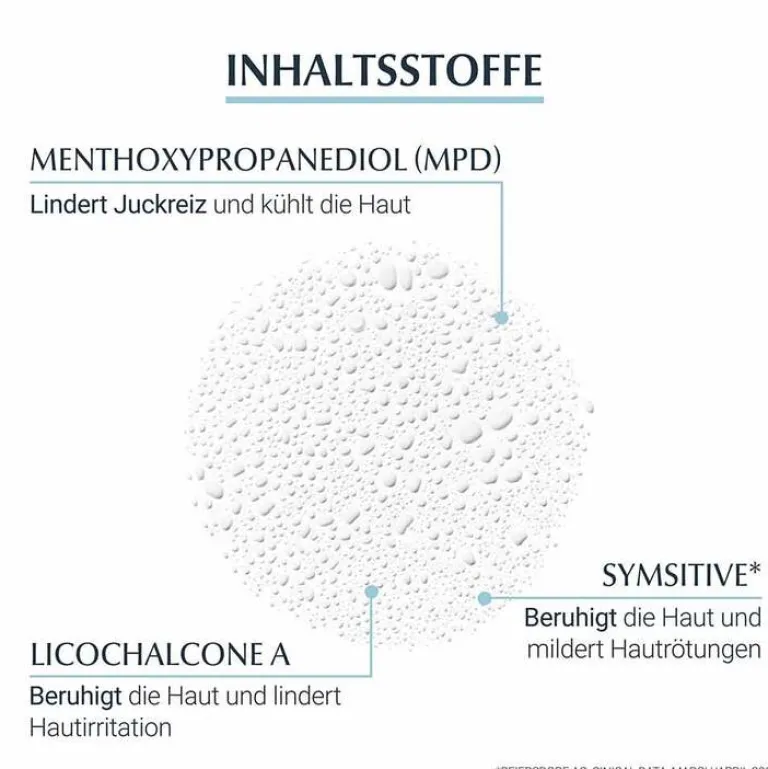 Es überzeugt mit einer 2-fachen Pflegeformel: 1. wird der Juckreiz bereits nach 60 Sekunden gelindert und 2. hält diese beruhigende Wirkung bis zu 6 Stunden an. Dank der Formel mit den Wirkstoffen MPD (Menthoxypropanediol), SymSitive und Polidocan wird die Haut gekühlt und erfrischt. Dies wirkt effektiv sowie langanhaltend gegen juckende Haut. Eine sehr gute Verträglichkeit und Pflegewirksamkeit ist dermatologisch nachgewiesen. Eignet sich für Kinder ab 3 Jahren und Erwachsene.