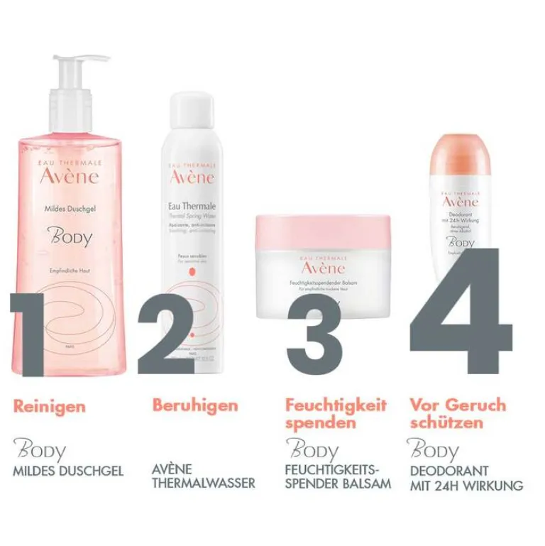 Das Body Deodorant mit 24h Wirkung hemmt die Geruchsbildung und bietet eine zuverlässige kurzfristige und langanhaltende Wirkung gegen geruchsauslösende Hautbakterien. Außerdem absorbiert die enthaltene Reisstärke Feuchtigkeit und vermeidet dadurch Flecken auf der Kleidung. Der beruhigende Aktivstoff-Komplex aus Avène Thermalwasser und drei pflanzlichen Ölen beruhigt und pflegt die Haut. Es ist selbst bei rasierter oder epilierter Haut anwendbar.