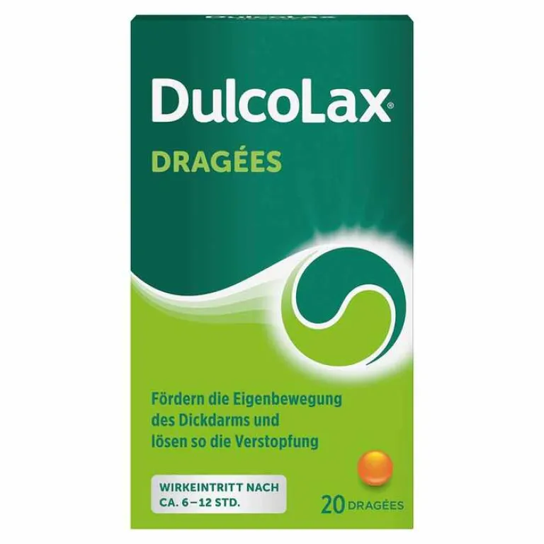 Dulcolax® Dragées. Wirkstoff: Bisacodyl Anwendungsgebiet: Zur Anwendung bei Verstopfung, bei Erkrankungen, die eine erleichterte Darmentleerung erfordern sowie zur Darmentleerung bei Behandlungsmaßnahmen u. Maßnahmen zum Erkennen von Krankheiten (therapeut. u. diagnost. Eingriffe) am Darm. Hinweis: Wie andere Abführmittel sollten Dulcolax® Dragées ohne ärztl. Abklärung der Verstopfungsursache nicht täglich oder über einen längeren Zeitraum eingenommen werden. Enthält den Farbstoff Gelborange S, Lactose u. Sucrose. Trägt nicht zur Gewichtsabnahme bei. Der gleichzeitige Gebrauch von anderen Abführmitteln kann die Nebenwirkungen im Magen-Darmtrakt verstärken. Packungsbeilage beachten. Apothekenpflichtig. Zu Risiken und Nebenwirkungen lesen Sie die Packungsbeilage und fragen Sie Ihre Ärztin, Ihren Arzt oder in Ihrer Apotheke. A. Nattermann & Cie. GmbH, Brüningstraße 50, 65929 Frankfurt am Main. Stand: August 2023