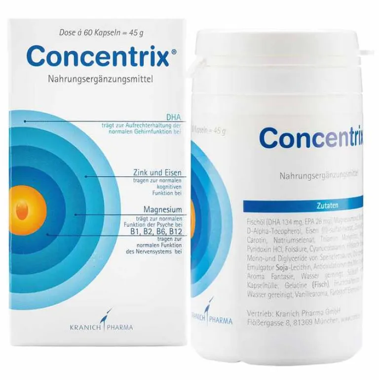 * DHA trägt zur Aufrechterhaltung der normalen Gehirnfunktion bei, die positive Wirkung stellt sich bei einer täglichen Aufnahme von 250 mg DHA ein. Zink und Eisen tragen zur normalen kognitiven Funktion bei. Magnesium trägt zur normalen Funktion der Psyche bei. Vitamin B1, B2, B6, B12 tragen zur normalen Funktion des Nervensystems bei.