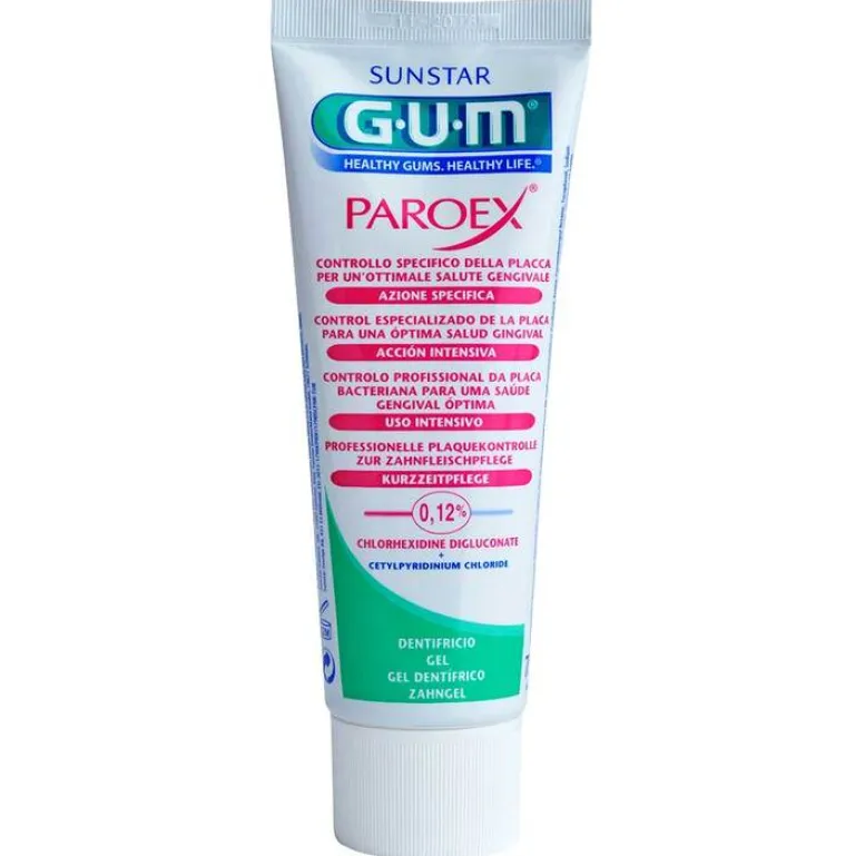 Die gute Nachricht ist, dass Experten von Sunstar mit GUM Paroex ein Sortiment entwickelt haben, welches Ihr Zahnfleisch gesund erhält oder es wieder in einen guten Zustand bringt. Es reduziert nicht nur bestehenden bakteriellen Zahnbelag, es hemmt auch dessen Neubildung. Gum Paroex 0,12 % CHX Zahngel eignet sich zur intervallartigen 2-Wochen-Kur bei Zahnfleischproblemen.