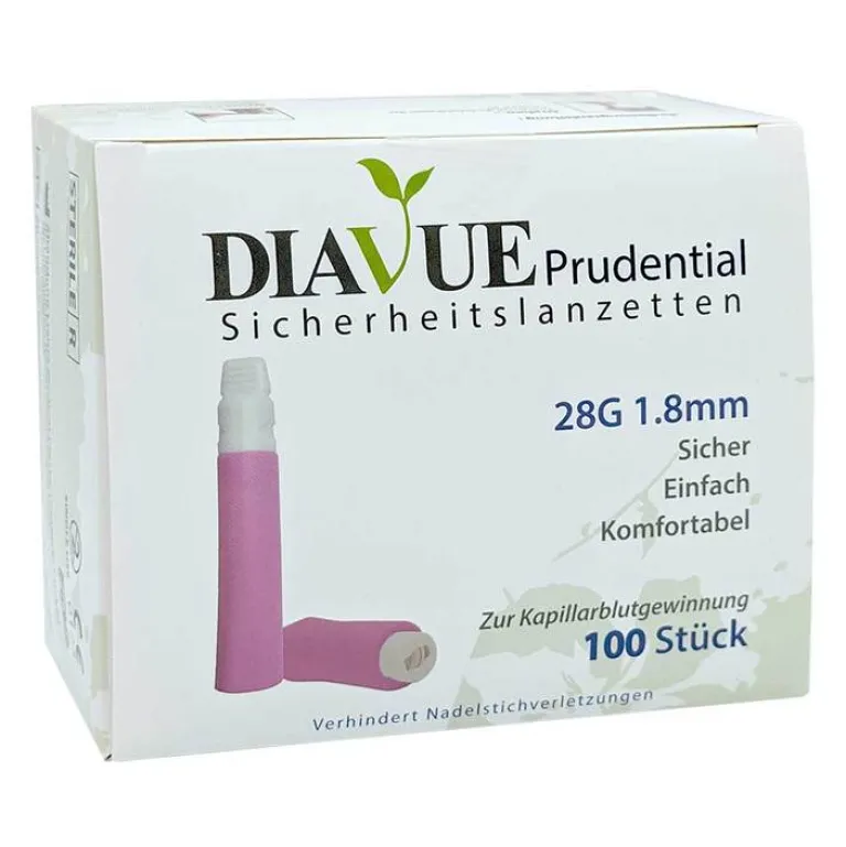 Die Diavue Prudential Sicherheitslanzetten machen die Blutentnahme einfach und sicher. Sie können nur einmal ausgelöst werden. Nach dem Auslösen lässt der Schutzmechanismus die Nadel wieder verschwinden. Sowohl der Anwender als auch der Patient sind vor Kontamination und versehentlichen Stichen sicher.