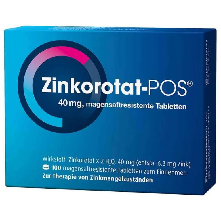 Zinkorotat-POS® 40 mg magensaftresistente Tabletten. Wirkstoff: Zinkorotat × 2 H2O. Anwendungsgebiete: Behandlung von Zinkmangelzuständen, die ernährungsmäßig nicht behoben werden können. Zu Risiken und Nebenwirkungen lesen Sie die Packungsbeilage und fragen Sie Ihre Ärztin, Ihren Arzt oder in Ihrer Apotheke. Stand: September 2022.