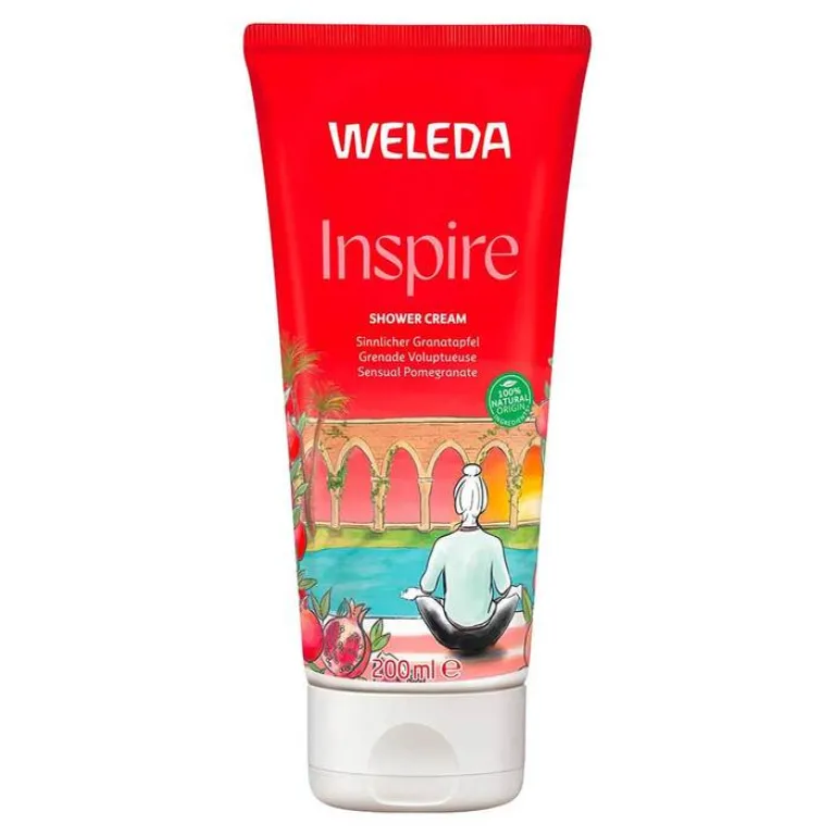 Inspirieren Sie Ihre Sinne, Fantasie und Kreativität. Die Weleda Inspire Shower Cream Granatapfel enthält kostbares Öl aus Granatapfelsamen und einen 100% natürlichen Duft von Orange, Davana, Vanille. Genießen Sie ein sinnliches Duscherlebnis.